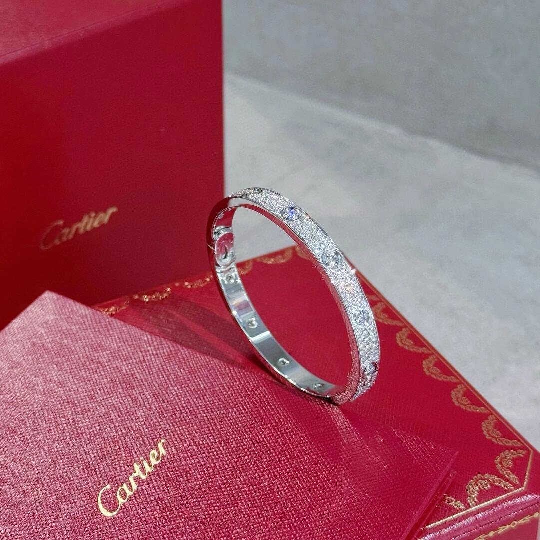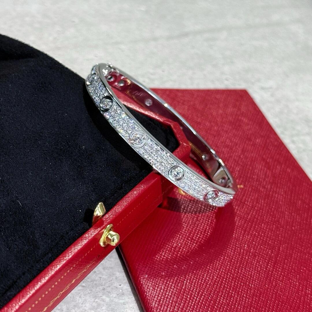 سوار الحب، ذهب وردي، ذهب أبيض، ذهب أصفر 750/1000، مرصع بـ 204 ماسات قطع بريانت يبلغ مجموعها 1.99 قيراط. العرض: 6.7 ملم. السُمك: 3 ملم