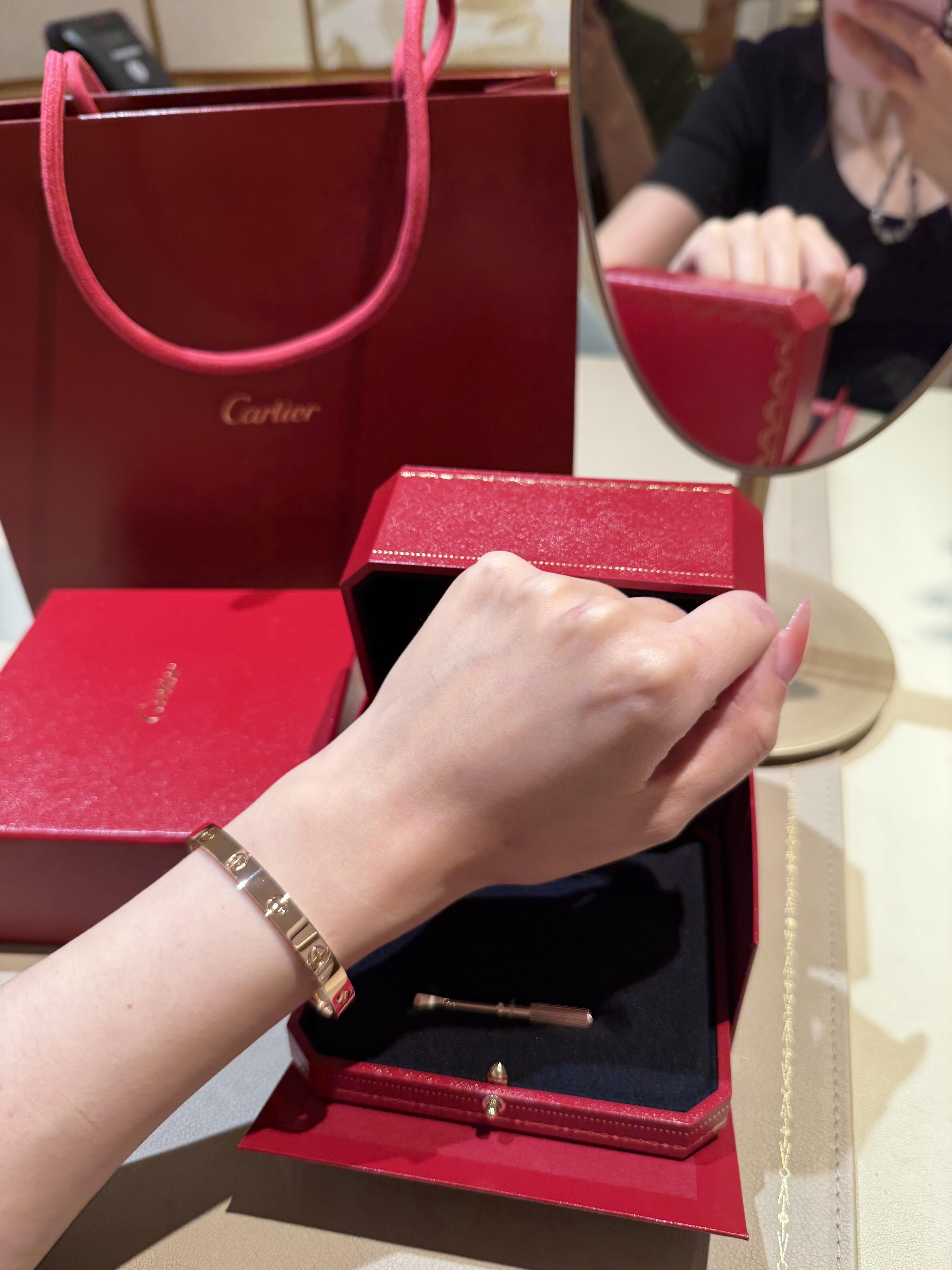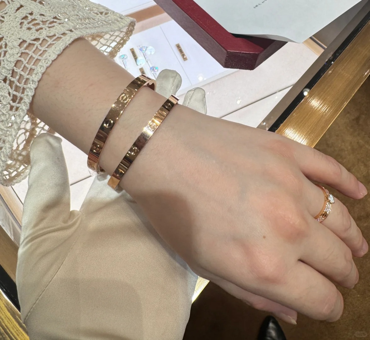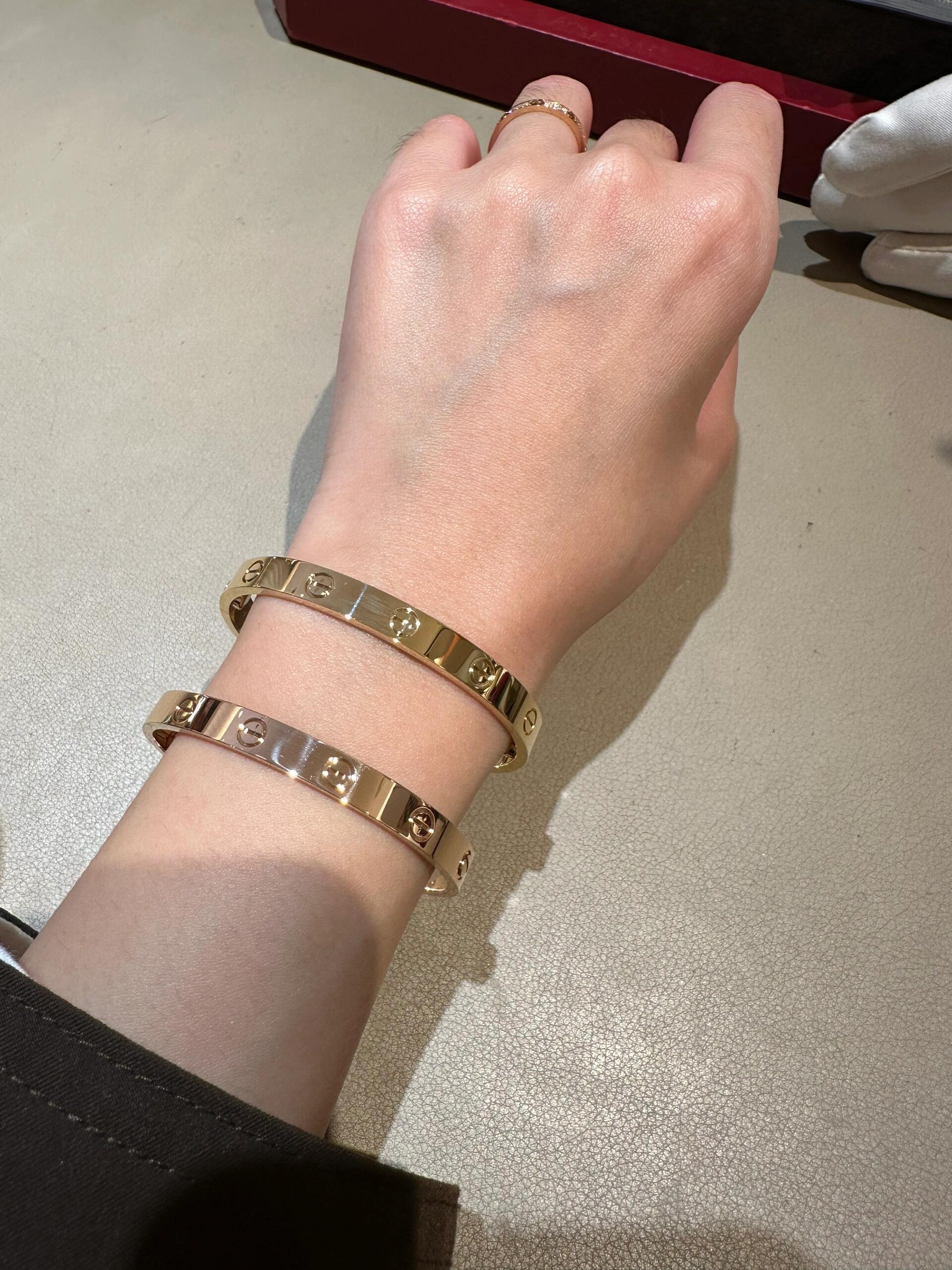 سوار LOVE، ذهبي، ذهب أبيض، ذهب وردي 750/1000. يأتي مع مفك البراغي. العرض: 6.1 ملم. يُعد سوار LOVE، الذي تم ابتكاره في نيويورك عام 1969، رمزًا لتصميم المجوهرات: سوار بيضاوي الشكل يتكون من قوسين صلبين يتم ارتداؤه على المعصم وإزالته باستخدام مفك براغي محدد. تم تصميم نظام الإغلاق ببرغيين وظيفيين موضوعين على جانبي السوار: ستحتاج إلى مساعدة لفتحه أو إغلاقه. لتحديد حجم سوار LOVE الخاص بك، قم بقياس معصمك، وأضف سنتيمترًا واحدًا إلى مقاسك للحصول على مقاس أكثر إحكامًا، أو سنتيمترين للحصول على مقاس فضفاض.