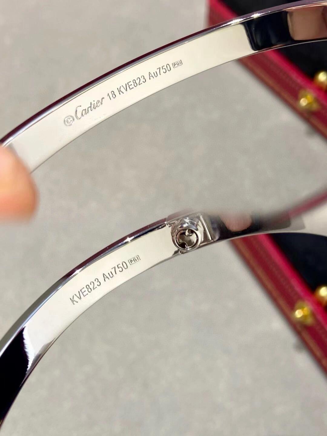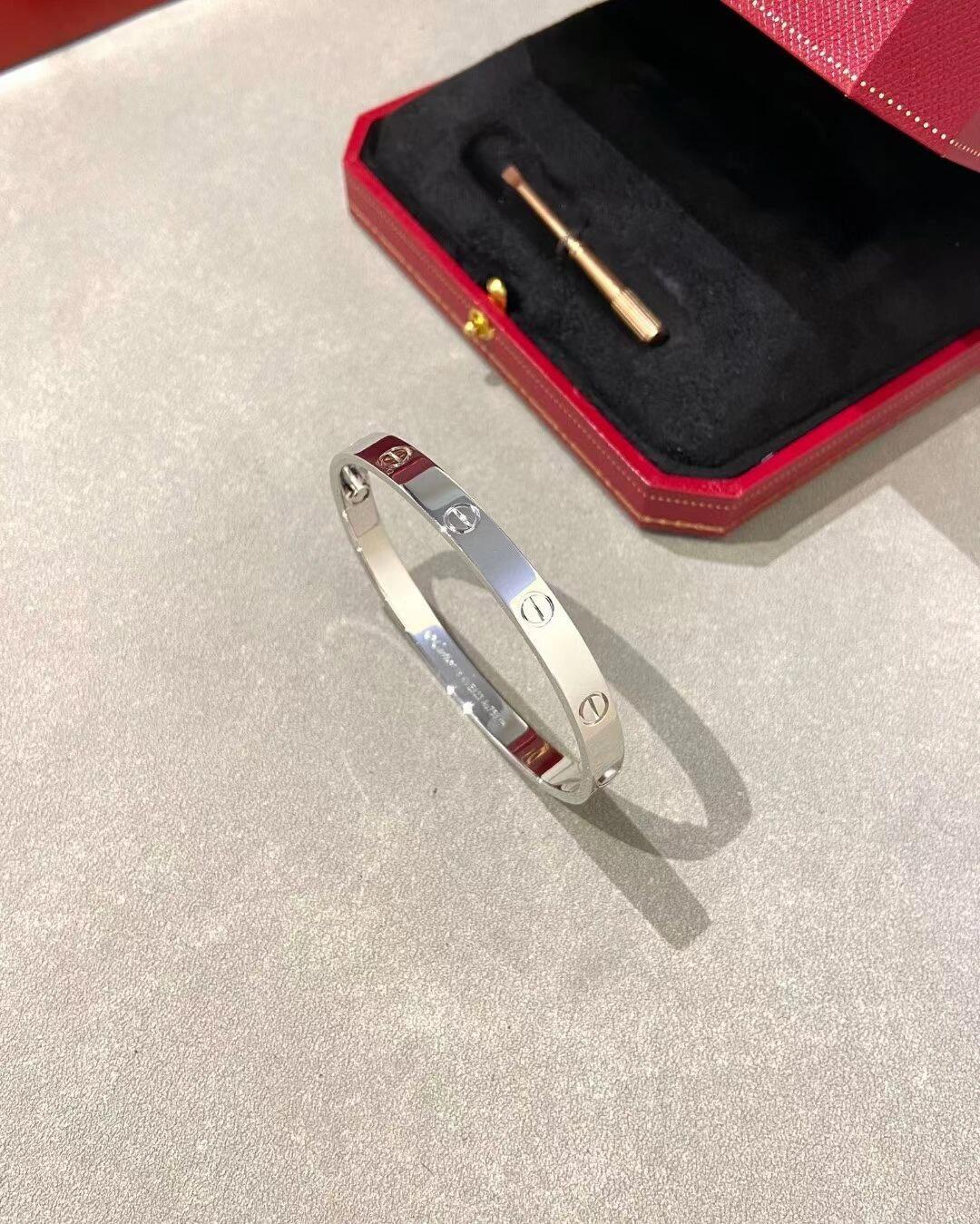 سوار LOVE، ذهبي، ذهب أبيض، ذهب وردي 750/1000. يأتي مع مفك البراغي. العرض: 6.1 ملم. يُعد سوار LOVE، الذي تم ابتكاره في نيويورك عام 1969، رمزًا لتصميم المجوهرات: سوار بيضاوي الشكل يتكون من قوسين صلبين يتم ارتداؤه على المعصم وإزالته باستخدام مفك براغي محدد. تم تصميم نظام الإغلاق ببرغيين وظيفيين موضوعين على جانبي السوار: ستحتاج إلى مساعدة لفتحه أو إغلاقه. لتحديد حجم سوار LOVE الخاص بك، قم بقياس معصمك، وأضف سنتيمترًا واحدًا إلى مقاسك للحصول على مقاس أكثر إحكامًا، أو سنتيمترين للحصول على مقاس فضفاض.