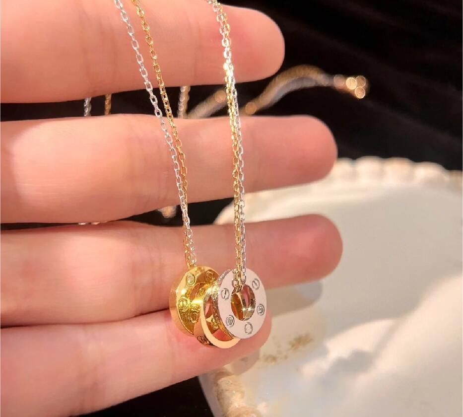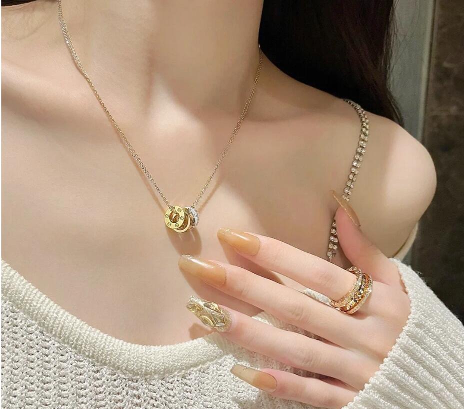 قلادة من مجموعة LOVE، مصنوعة من الذهب الوردي 750/1000، والذهب الأبيض 750/1000، ومرصّعة بـ 6 ماسات بقطع بريانت الحديث البرّاق تزن معًا 0.01 قيراط. القطر الداخلي mini cicle 5.6 مم. القطر الداخلي بطراز baby LOVE 8 مم. طول السلسلة 370 مم.