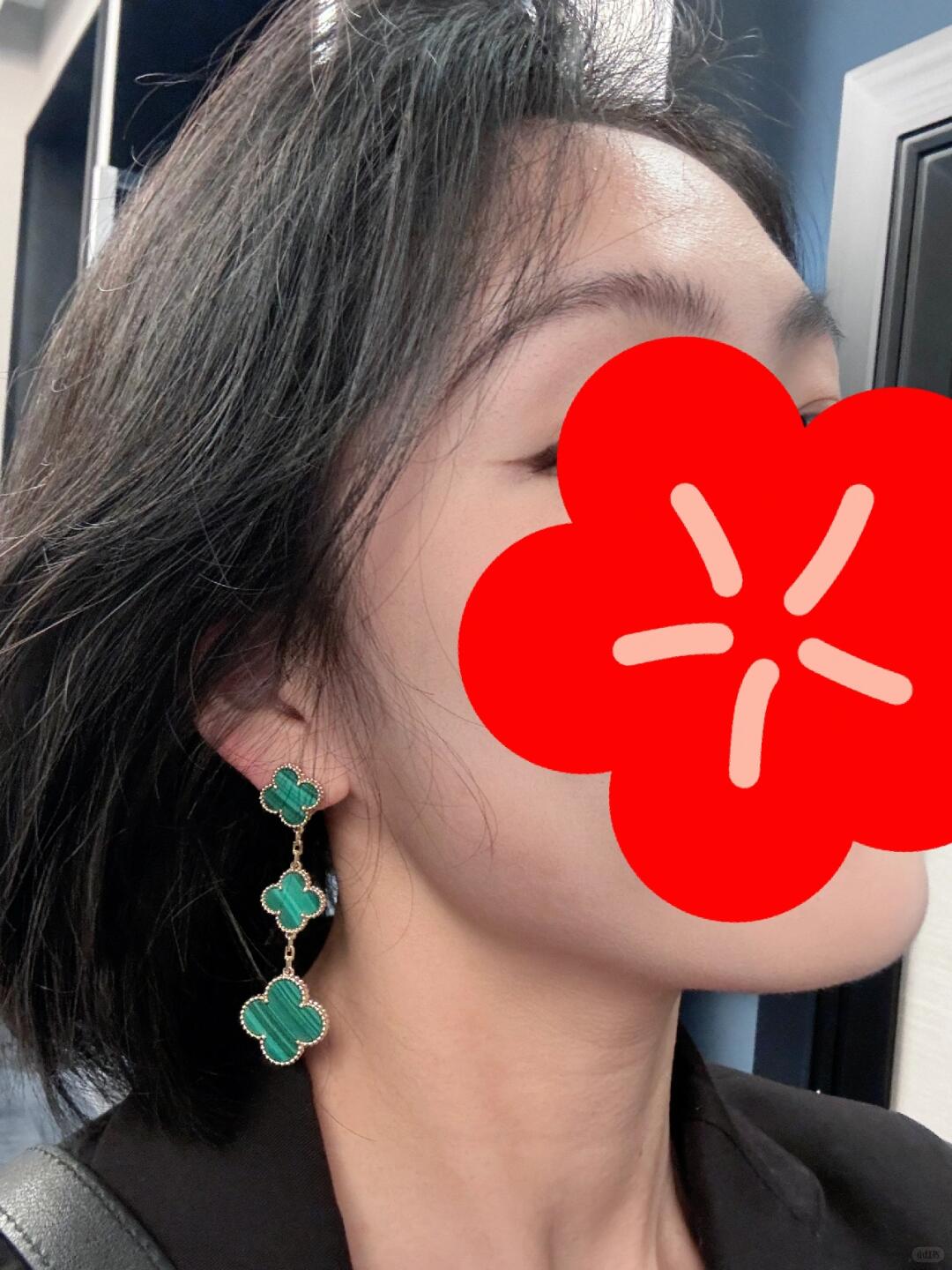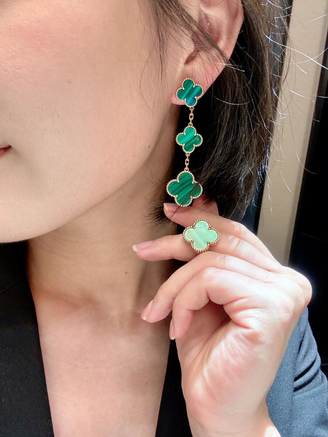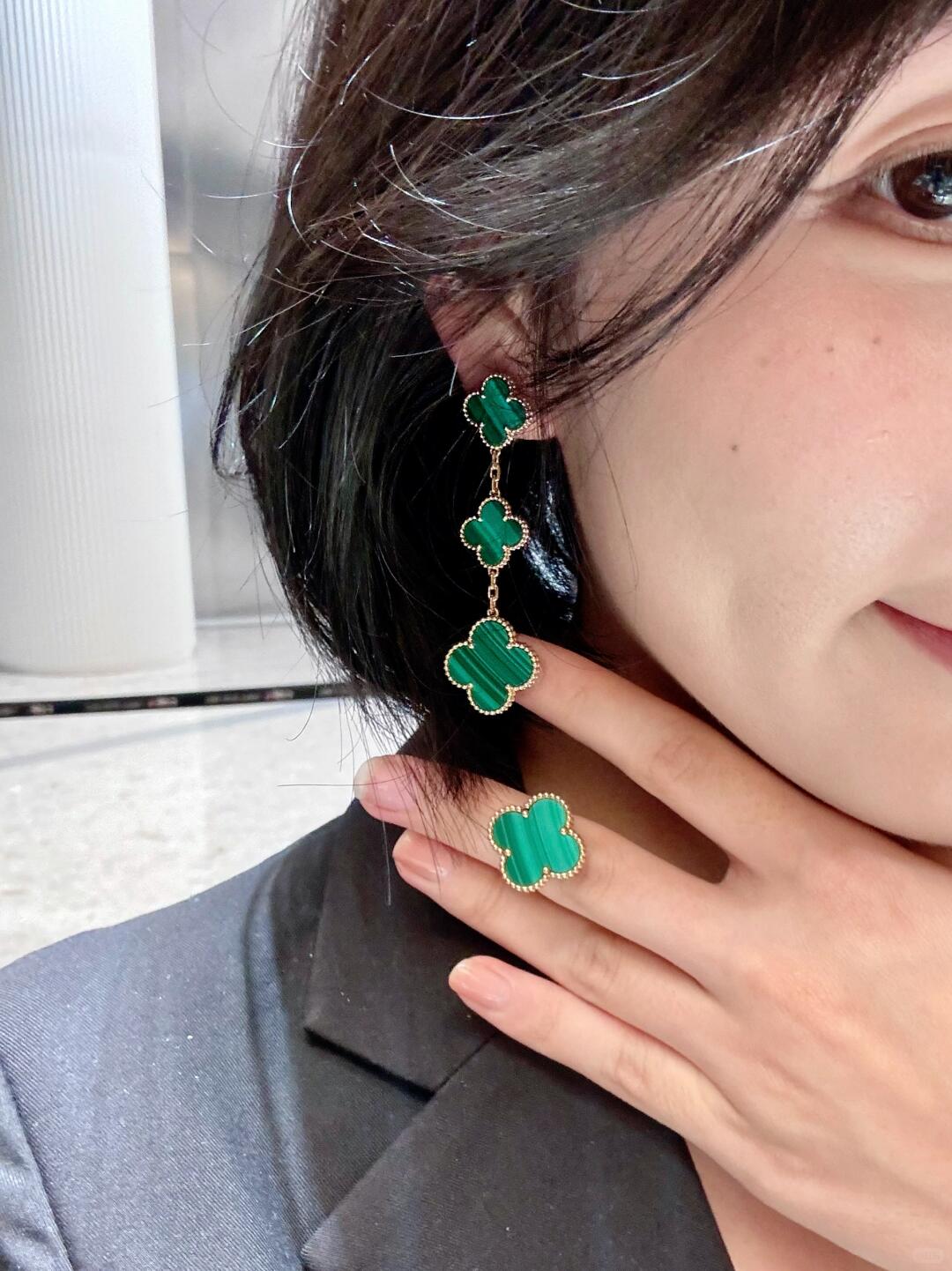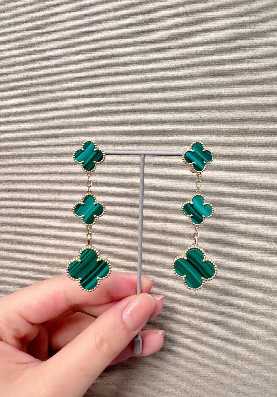 أقراط أذن ماجيك ألامبرا، 3 حلي زخرفية، ذهب أصفر 18 قيراط، مالاكيت.