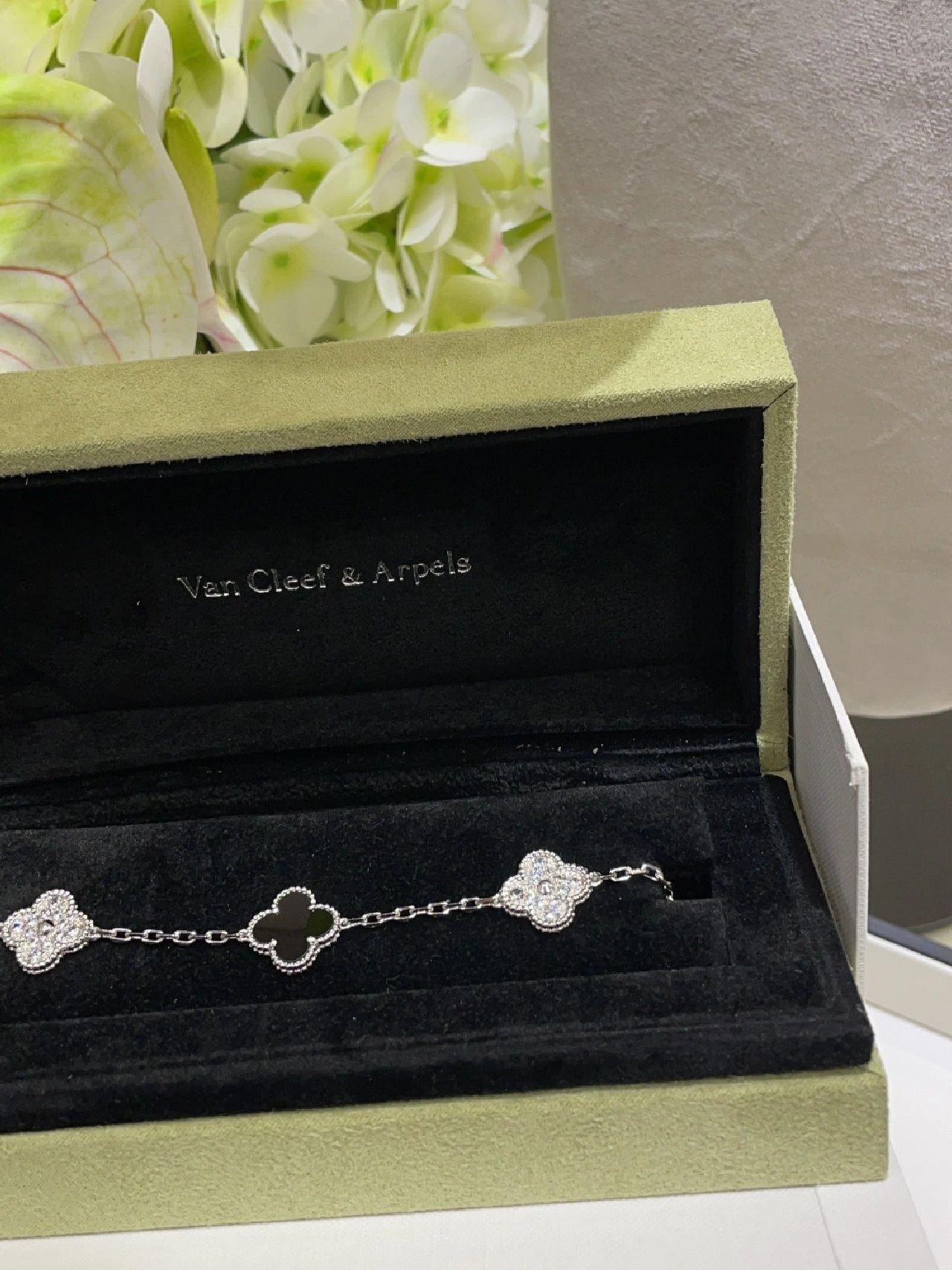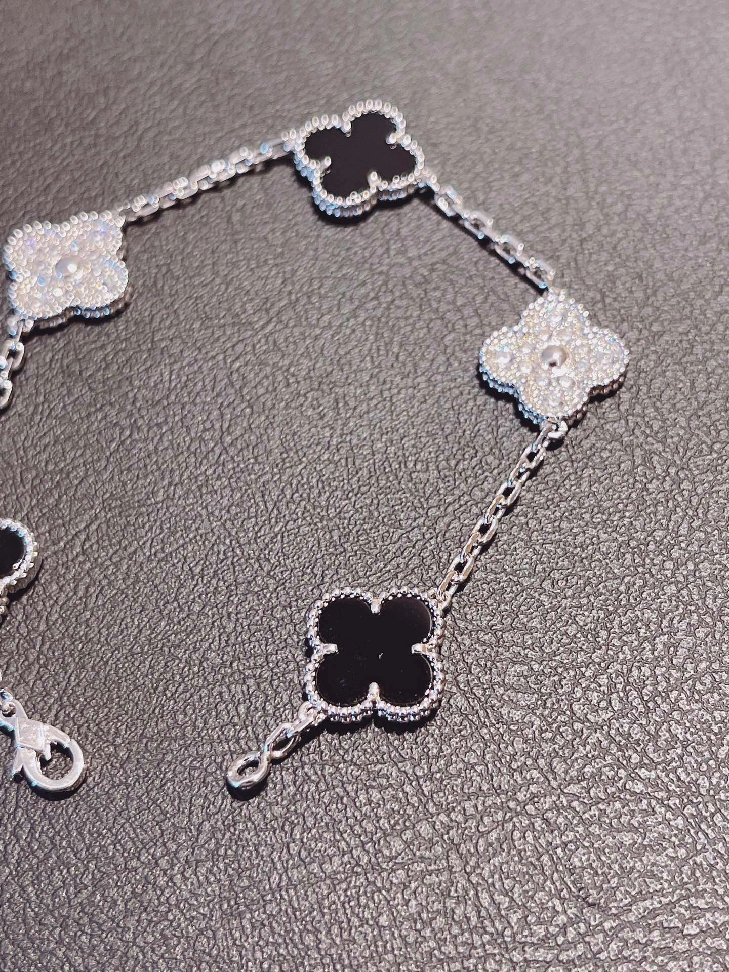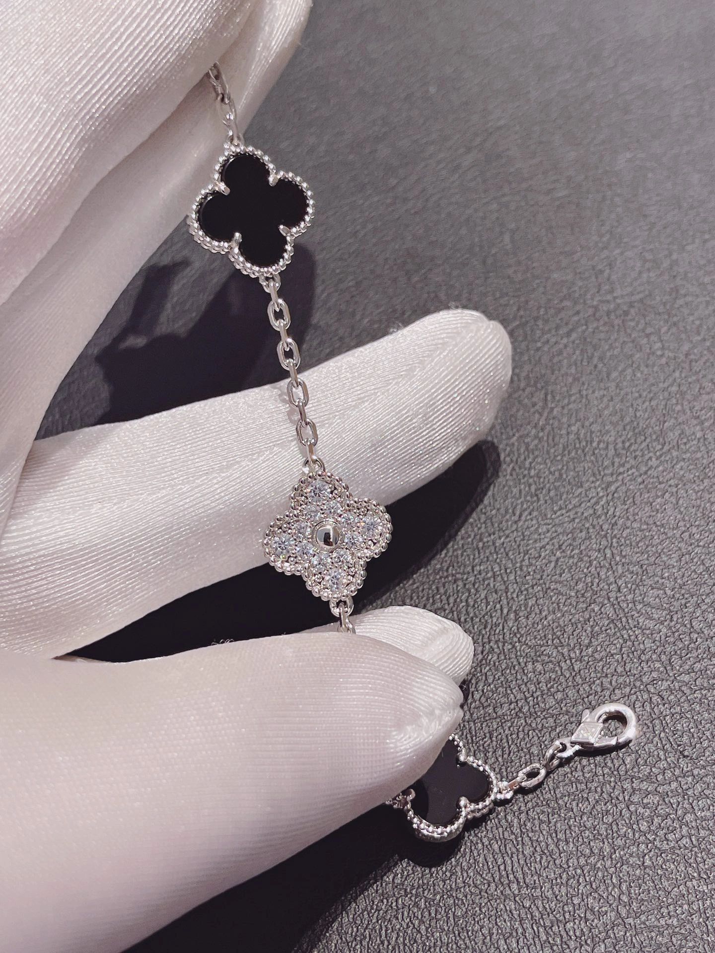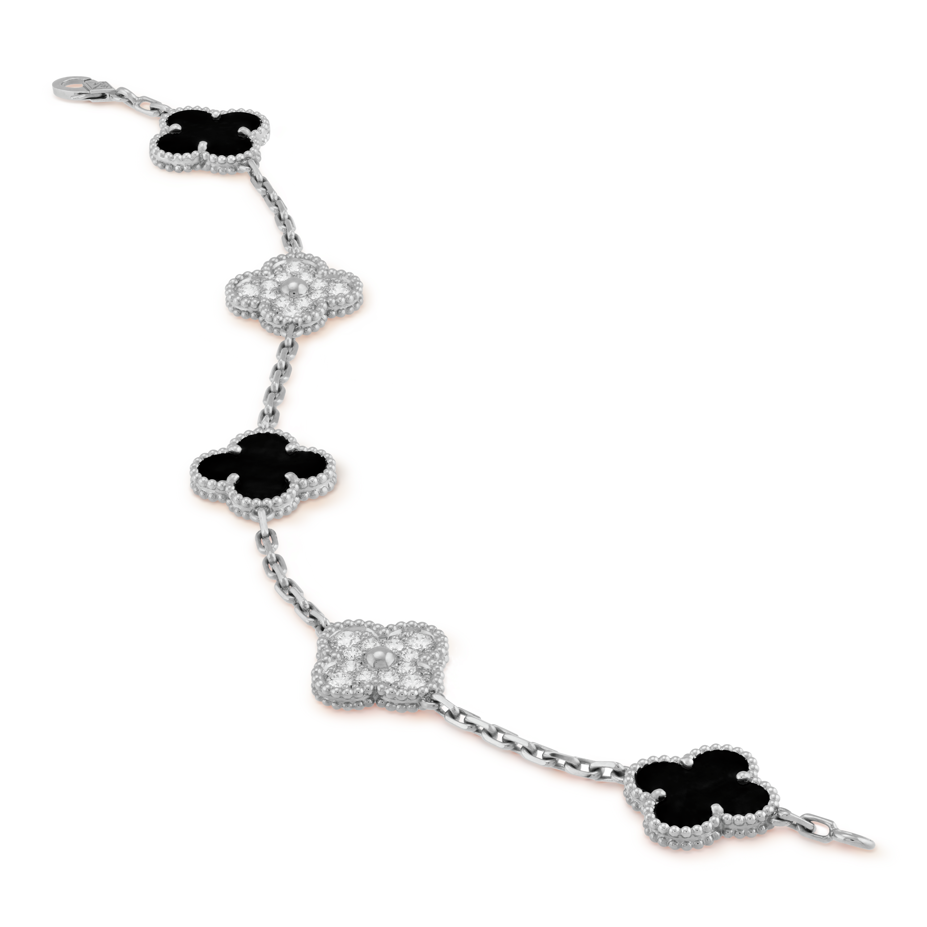 سوار فينتاج ألامبرا، 5 حلي زخرفية، ذهب أبيض مطلي بالروديوم 18 قيراط، أونيكس، ماس مستدير؛ الماس فئة DEF وIF إلى VVS.
