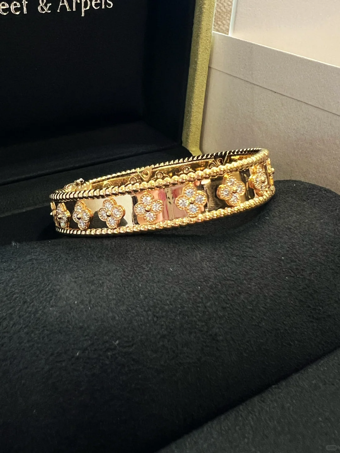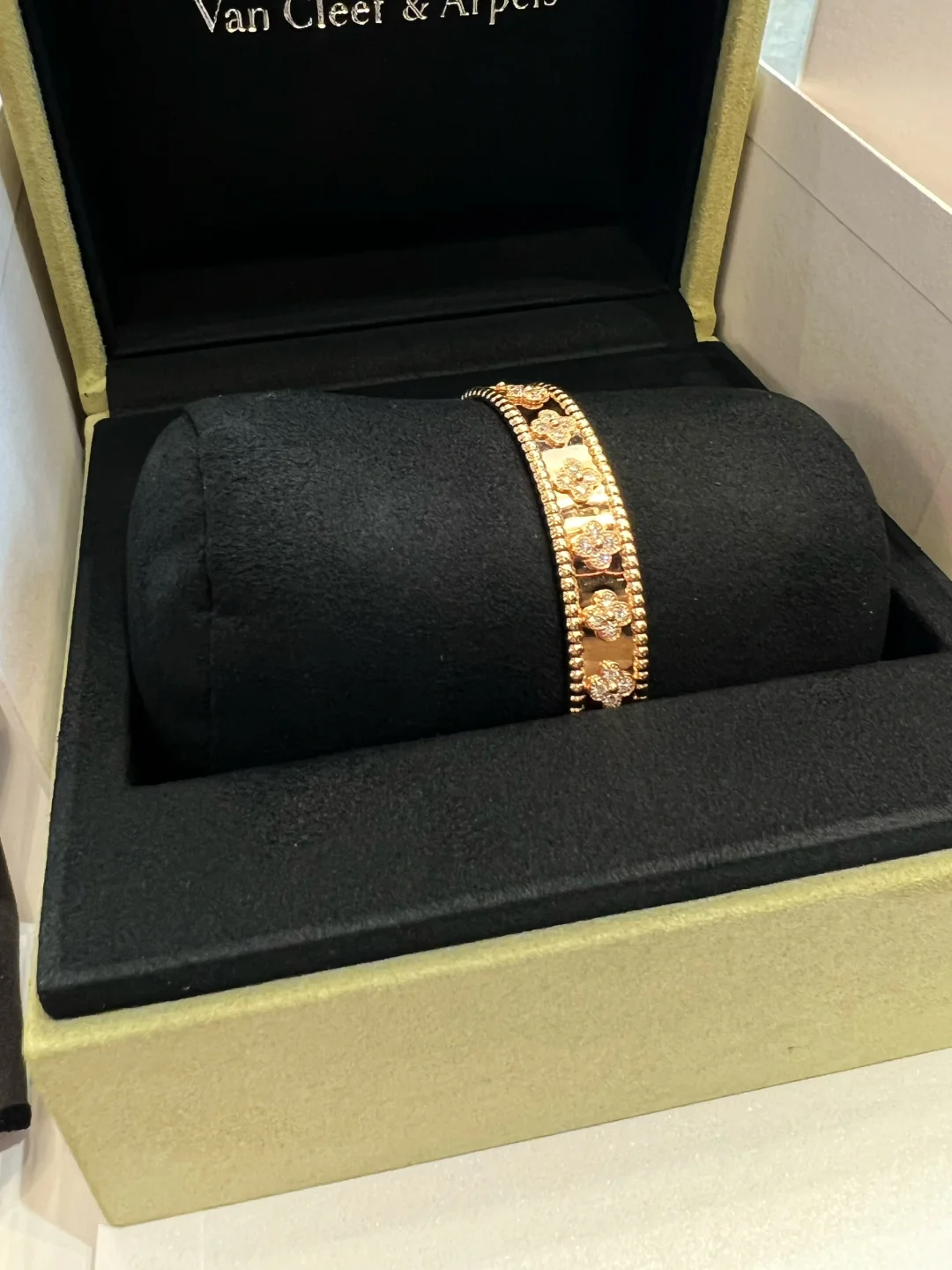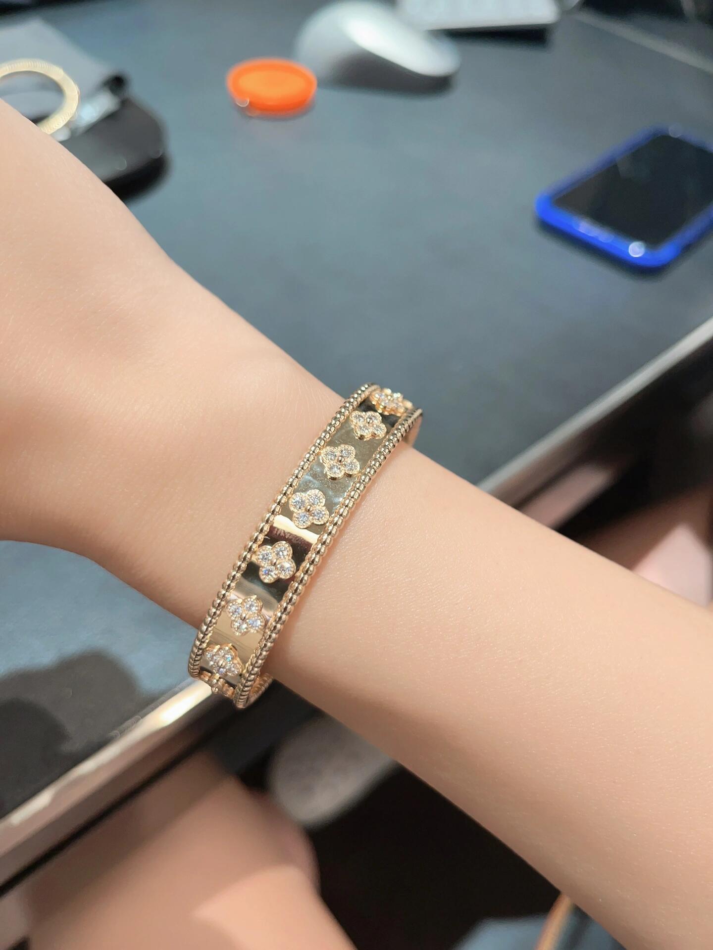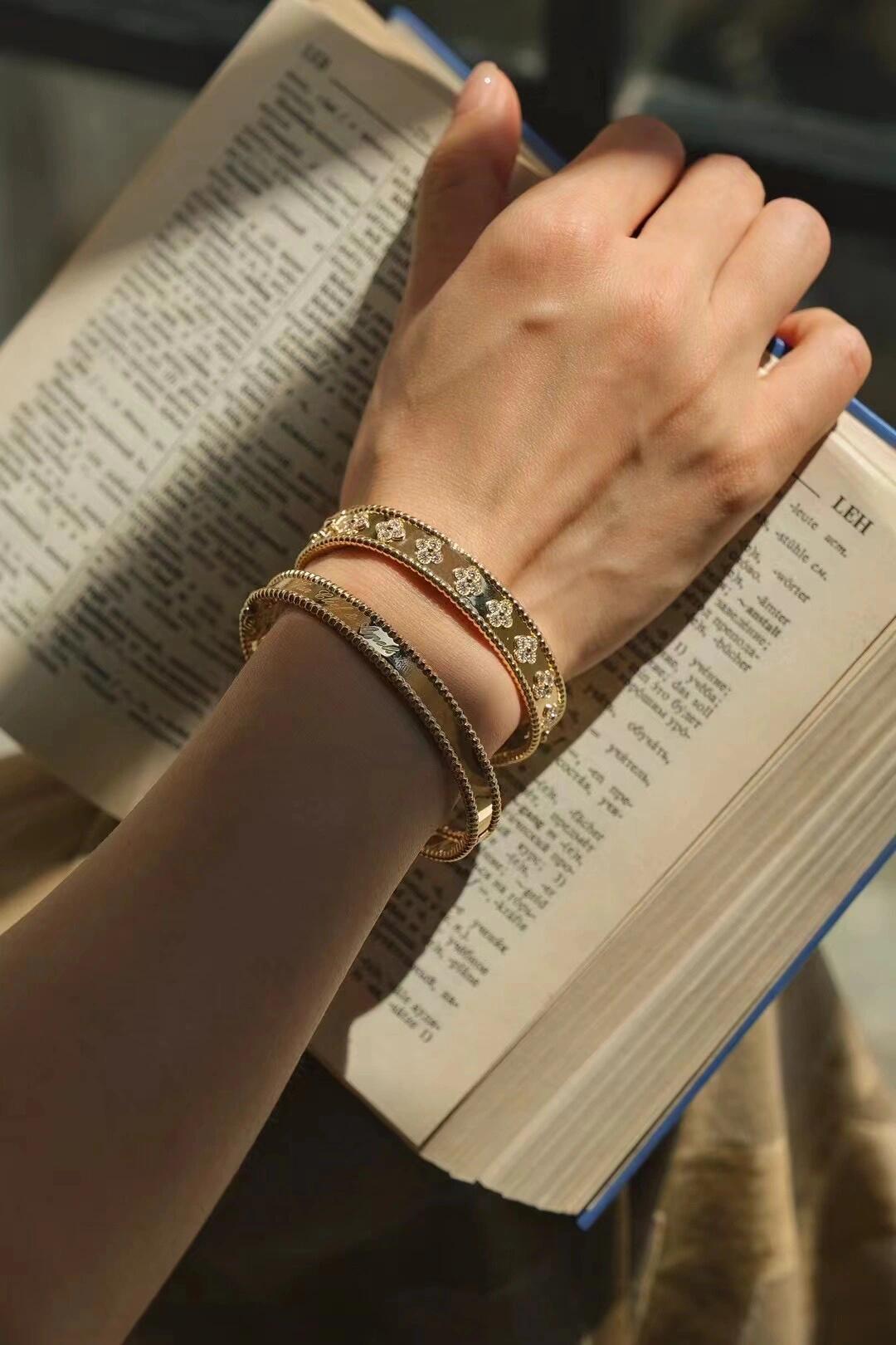 سوار بيرليه كلوفرز، ذهب أصفر 18 قيراط، ماس مستدير، موديل متوسط؛ الماس فئة DEF وIF إلى VVS.