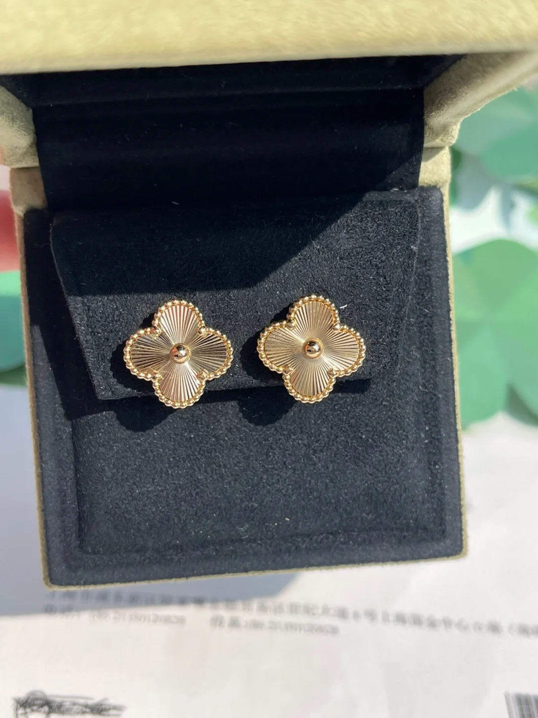 أقراط أذن فينتاج ألامبرا، ذهب أصفر 18 قيراط بزخرفة غيوشيه.