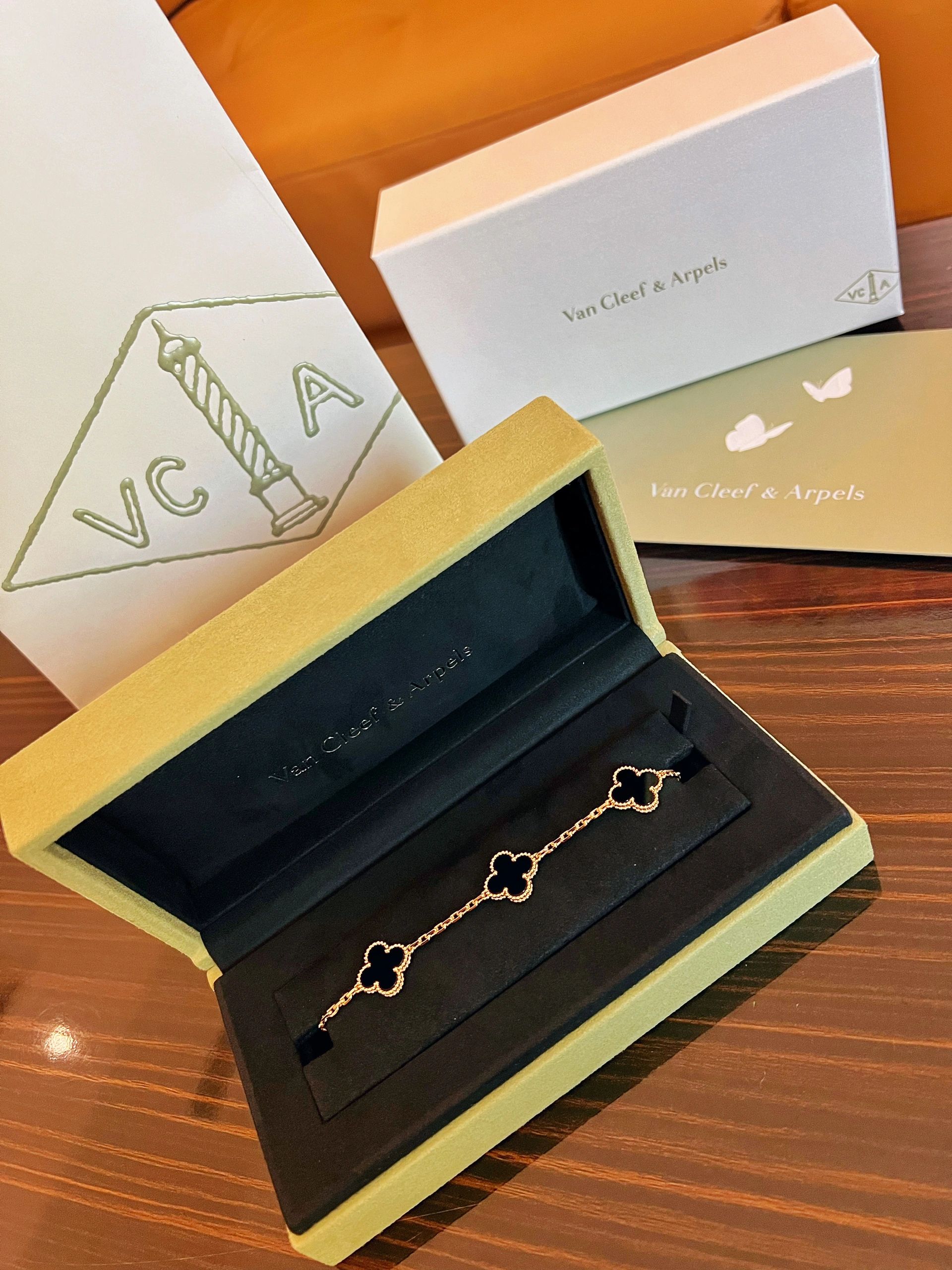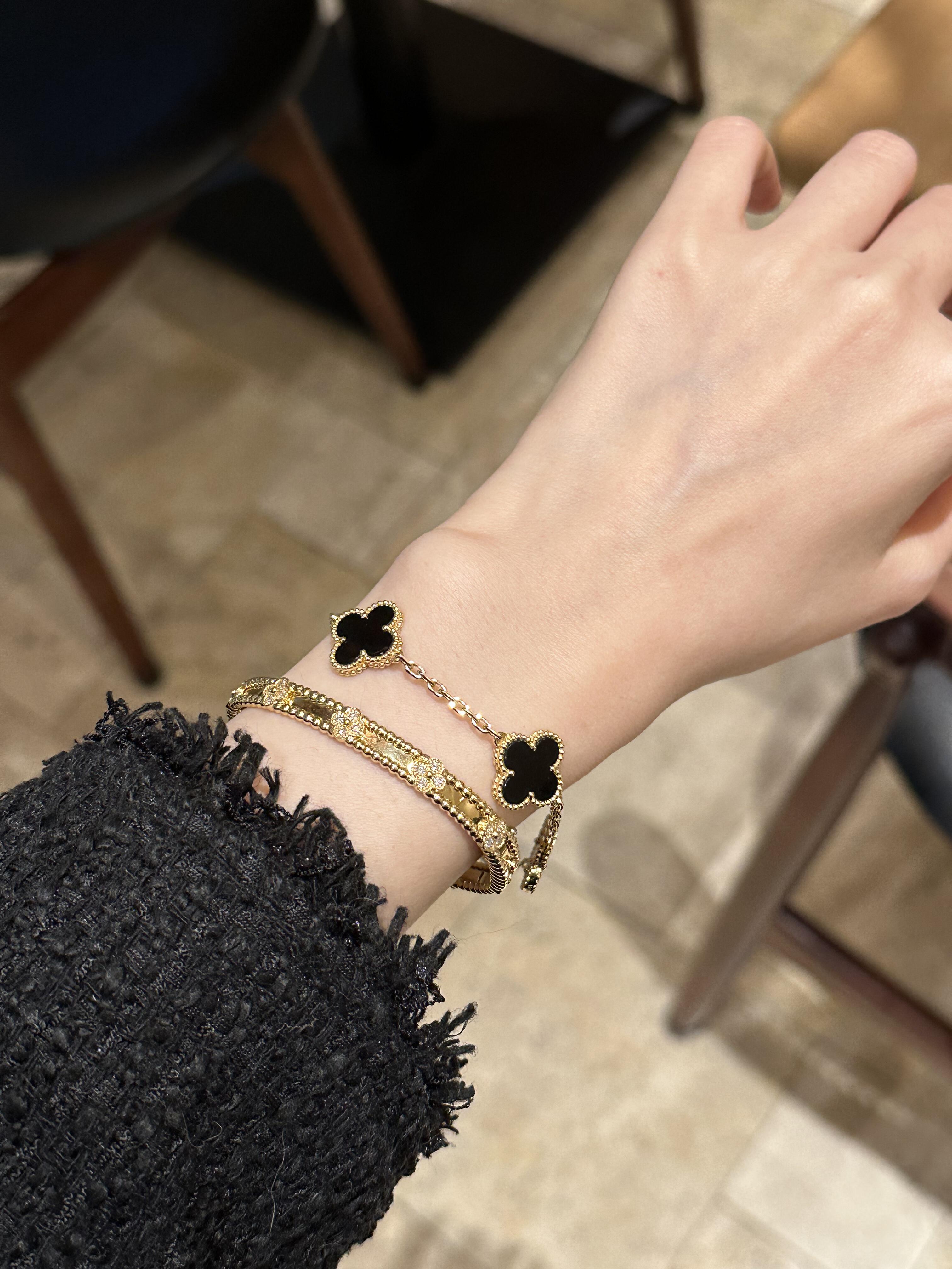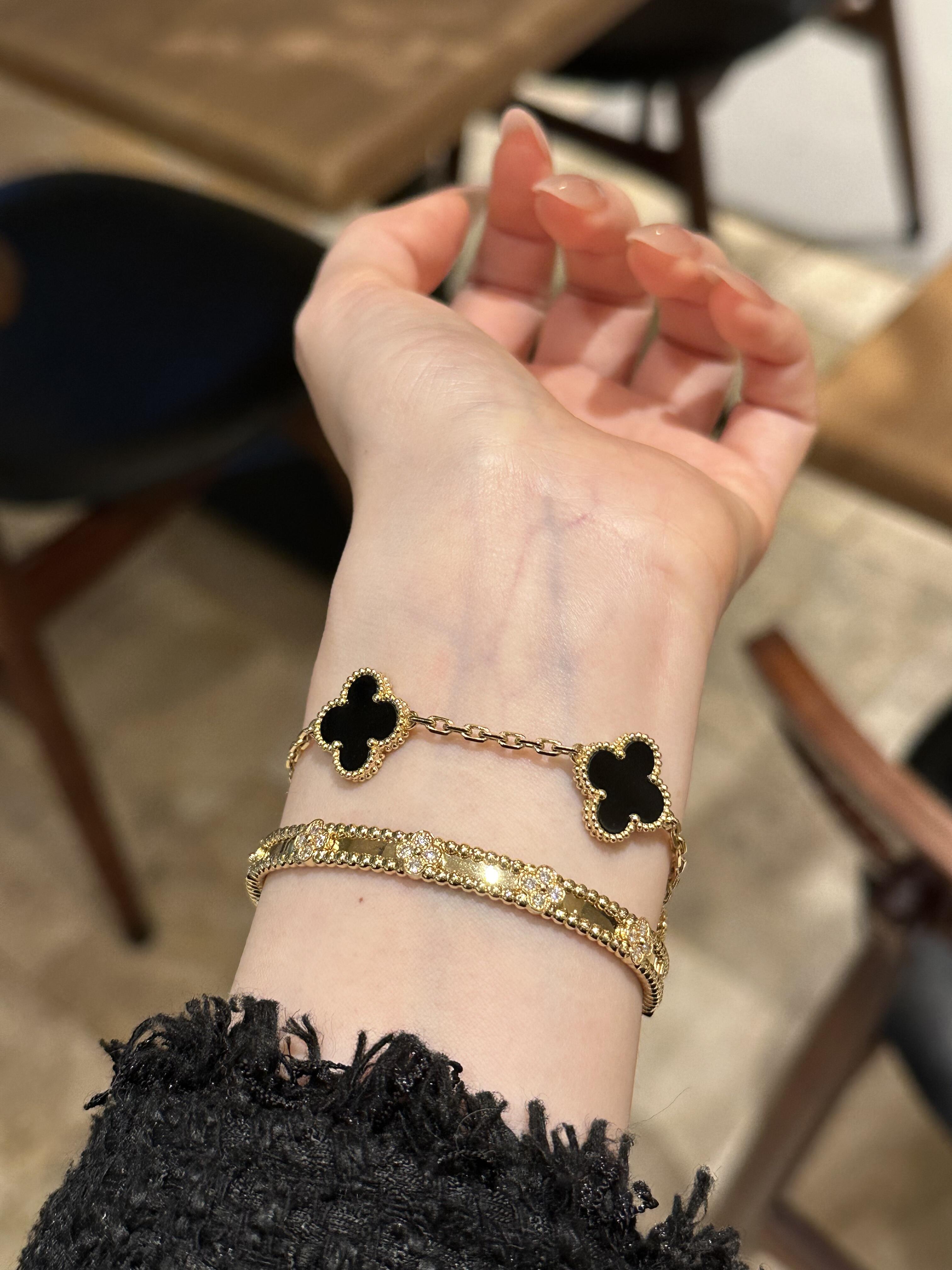 سوار فينتاج ألامبرا، 5 حلي زخرفية، ذهب أصفر 18 قيراط، أونيكس.