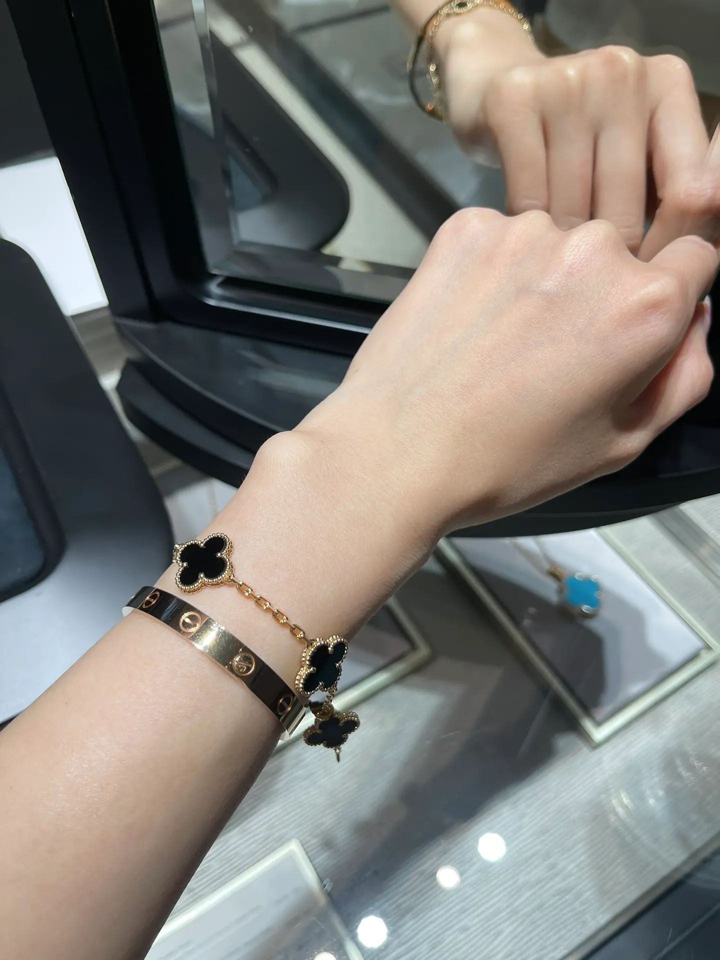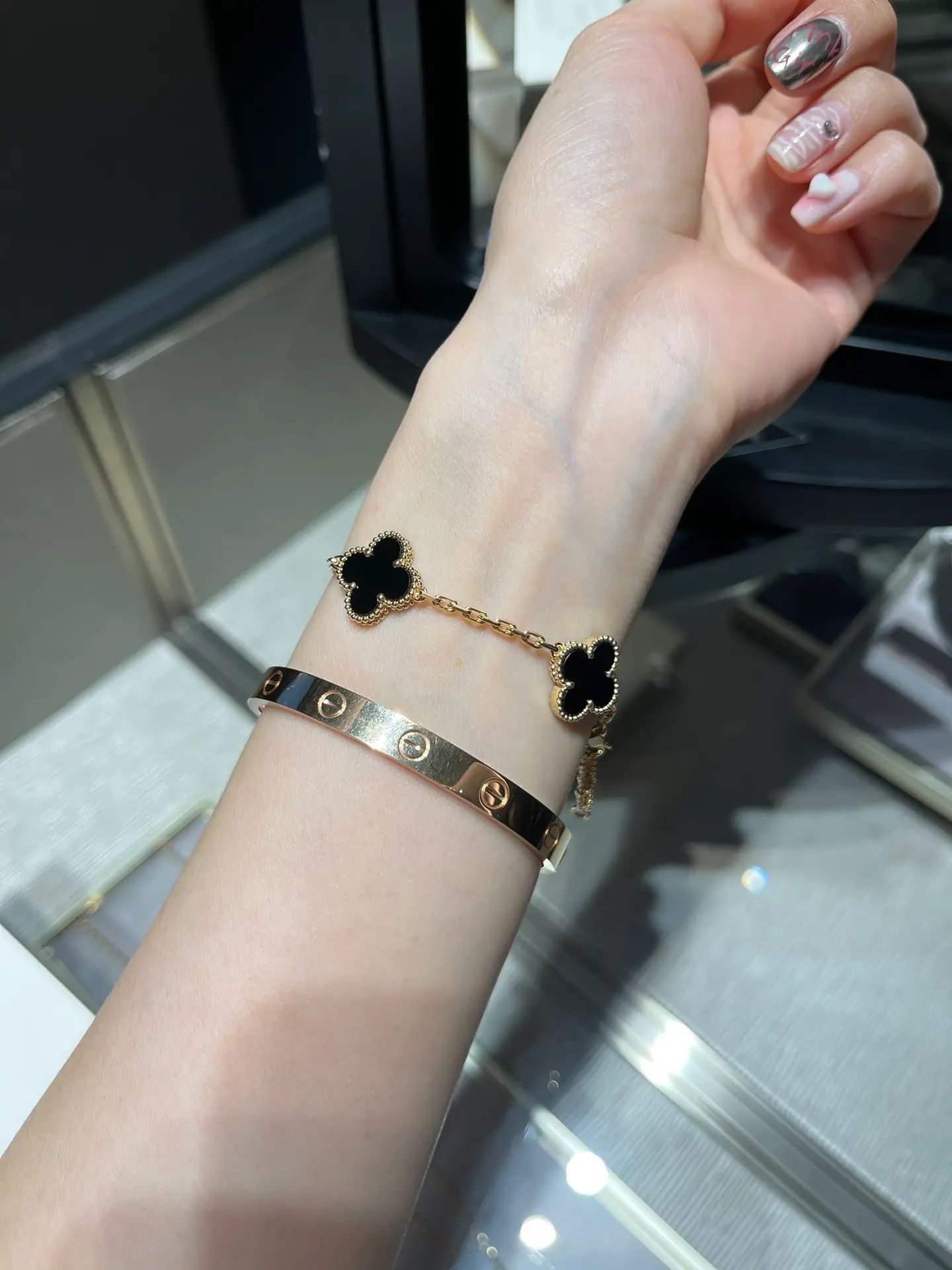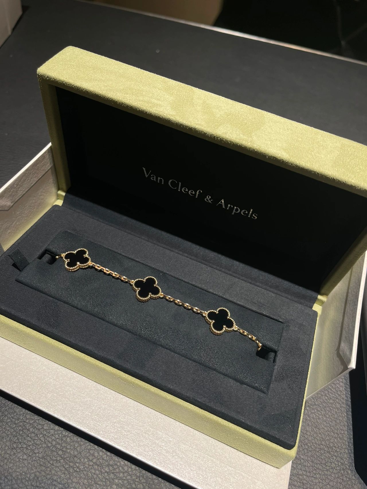 سوار فينتاج ألامبرا، 5 حلي زخرفية، ذهب أصفر 18 قيراط، أونيكس.