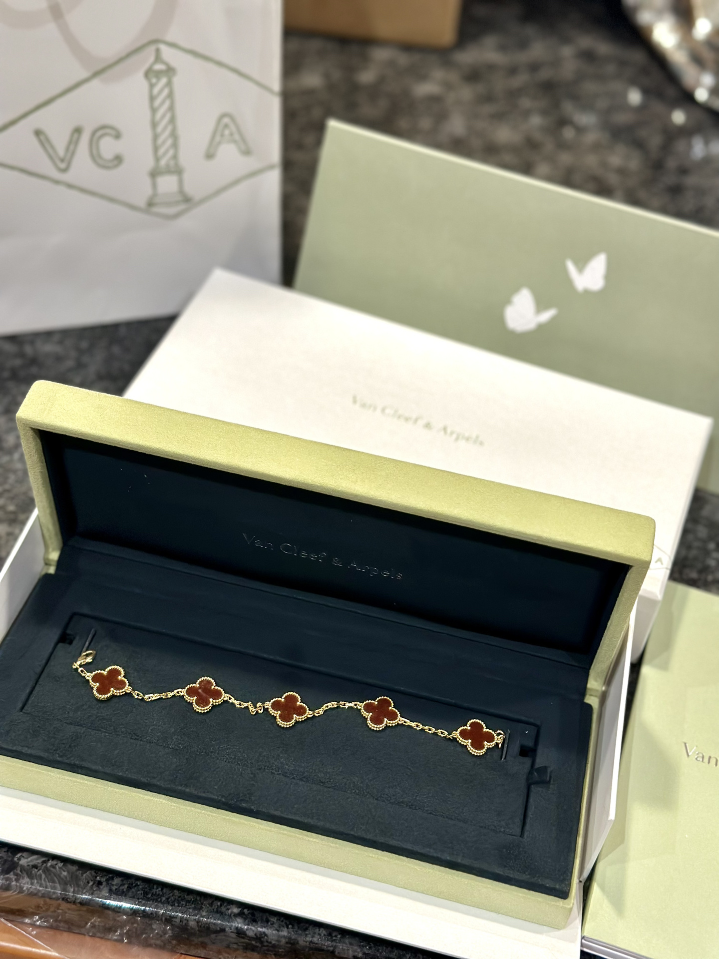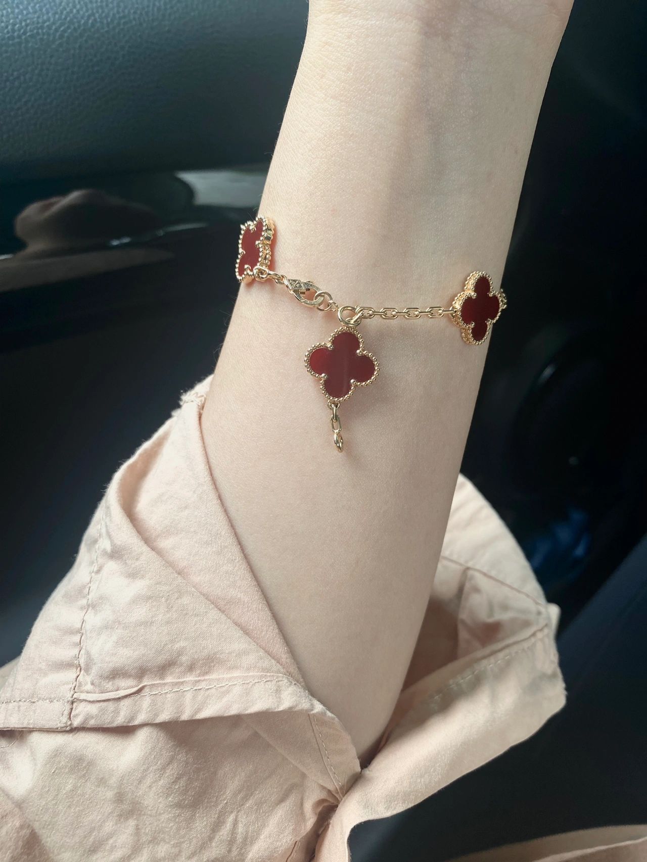 سوار فينتاج ألامبرا، 5 حلي زخرفية، ذهب أصفر 18 قيراط، عقيق أحمر.
