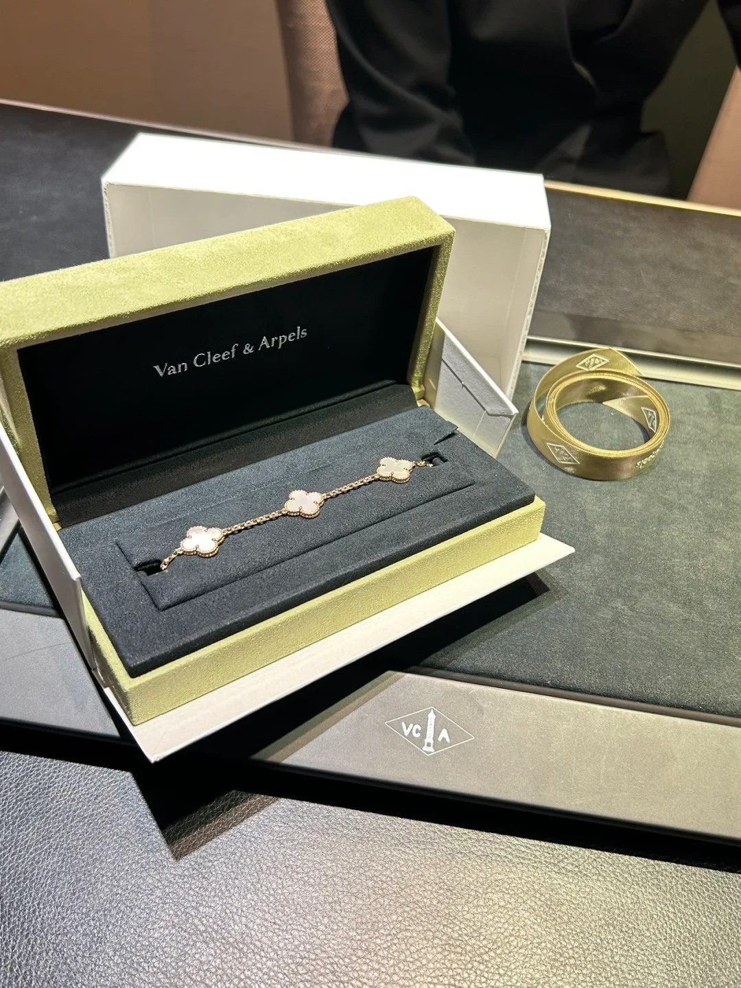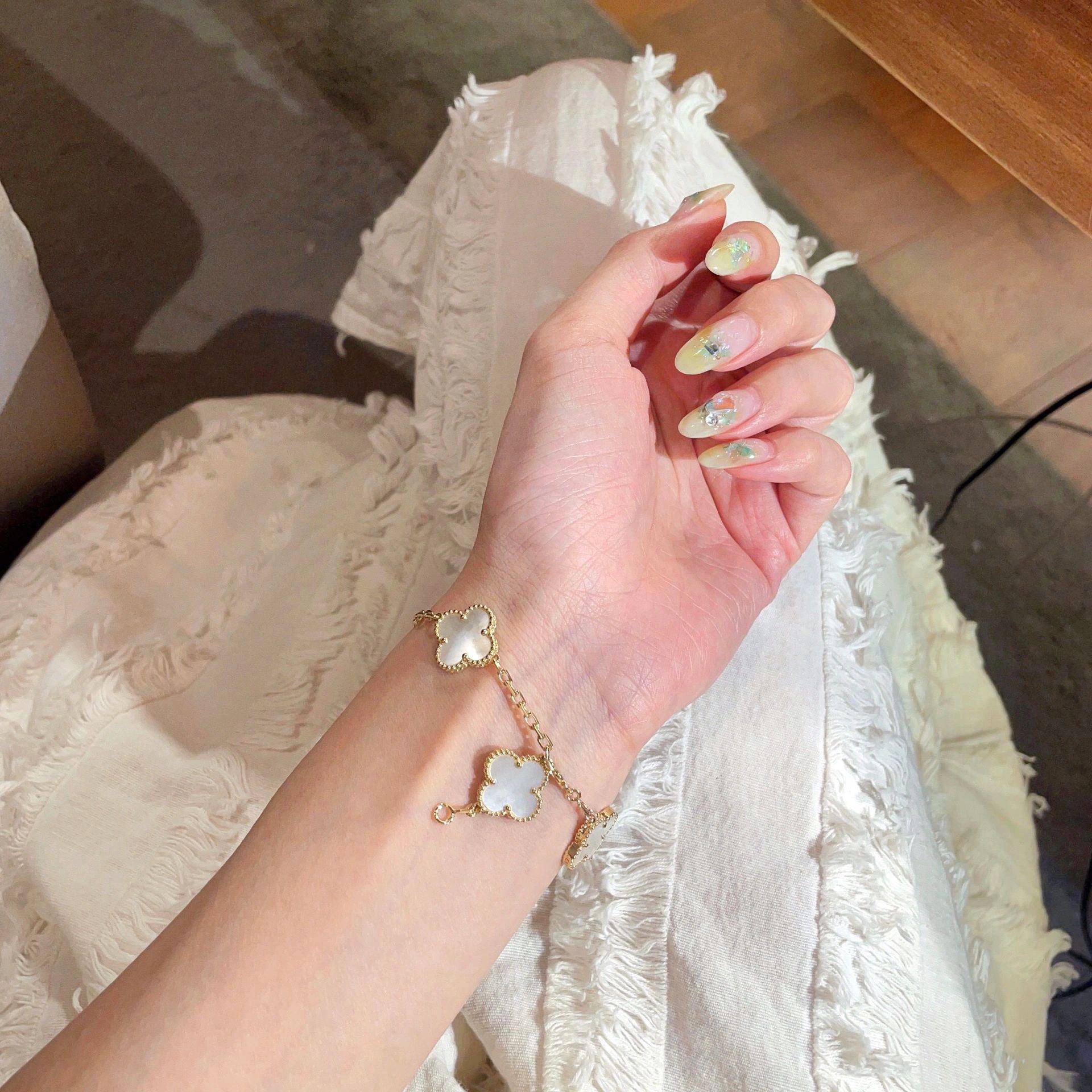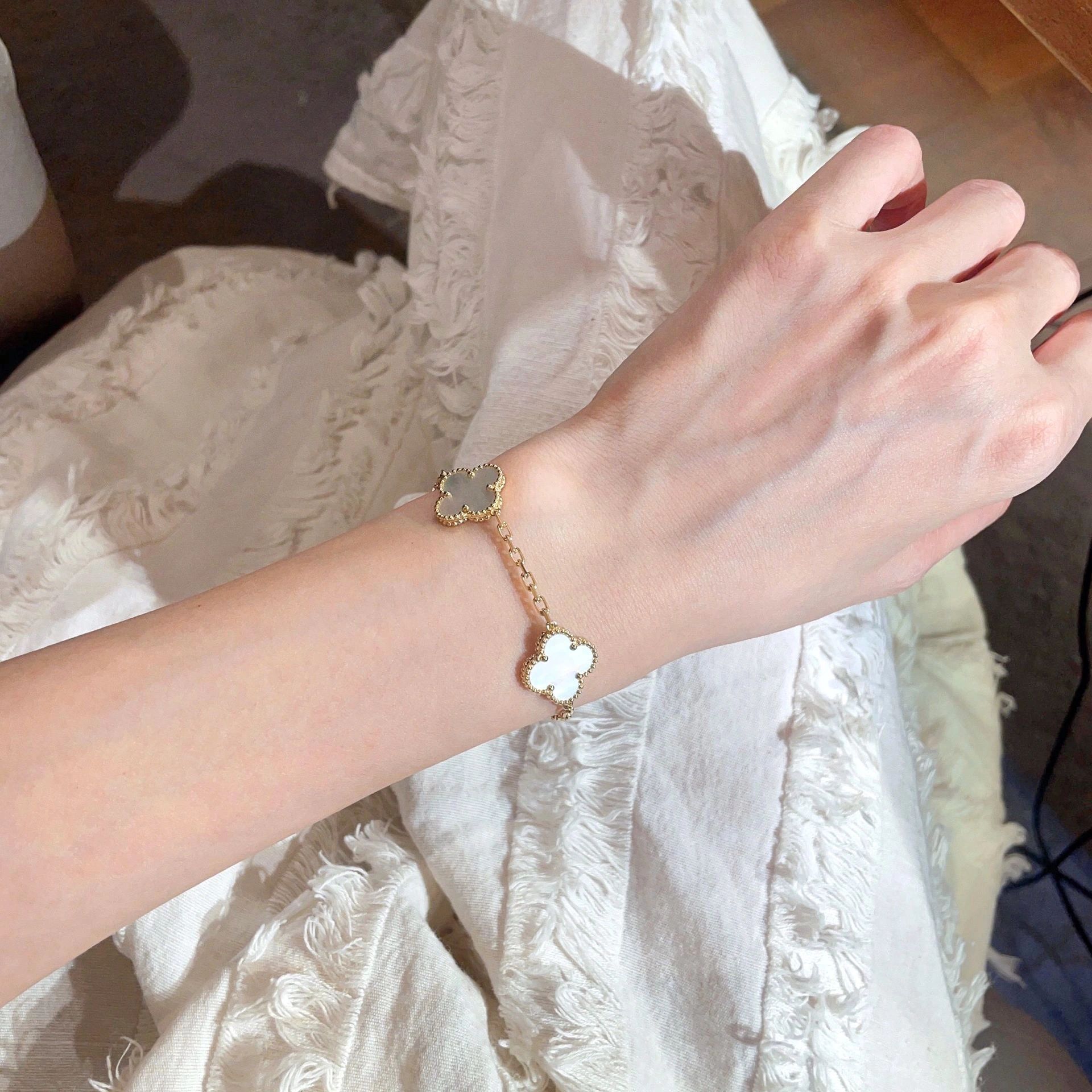 سوار فينتاج ألامبرا، 5 حلي زخرفية، ذهب أصفر 18 قيراط، عرق اللؤلؤ الأبيض